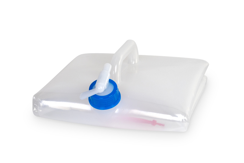 Faltkanister 15L,transparent, 25x25x25cm+4cm Griff/Hahn, Deckel blau