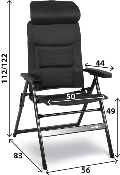Klappstuhl ARAVEL H2L Medium schwarz, höhenverstellbare Kopfstütze